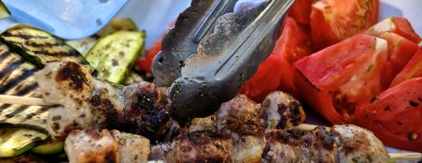 YES!!! Sonne, Meer, Italien. Wie haben wir es vermisst. Die Sonne brennt uns auf den Pelz und es ist Oktober. Kaum zu fassen. Die Grillsaison ist für uns eher eine Fata Morgana, am Horizont schwer erkennbar und dann durch einen Gewitterhagel zerstört. Deshalb schnell zum Metzger unseres Vertrauen und einkaufen und auf den Grill damit. In Schweinebauch eingewickeltes Filet mit rotem Pfeffer, Rosmarin und Spießchen. Dazu gibt es gegrillte Aubergine, Zucchini und die letzten sonnengereiften Tomaten dieses Jahres (aus der Gemüsebox). Eine Offenbarung! Auch wenn wir den ganzen Sommer versucht haben uns durch den deutschen Tomatenhimmel zu...