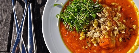 Heute haben wir Gäste. Endlich wieder etwas kochen! Nicht, dass es uns an etwas mangeln würde. Der Herbst steht vor der Türe und wir haben überall Kürbisse im Angebot. Ob auf dem Markt, im Super… oder auf der grünen Wiese. Alle wollen Kürbis. Das geht uns genauso wie im Sommer, wenn es endlich wieder Spargel gibt. Über die Jahre haben wir alle Varianten gekocht. Klassisch ohne alles, mit Birnen, Äpfeln, Karotten, Ingwer, Orangen, Mangos, Garnelen, als Pasta oder gleich im Ofen als Gemüse. Doch heute, nach all den Jahren endlich die Kürbissuppe für den ambitionierten Herbstverkoster: Hokaido-Papaya-Dream mit Maronen-Krümeln...