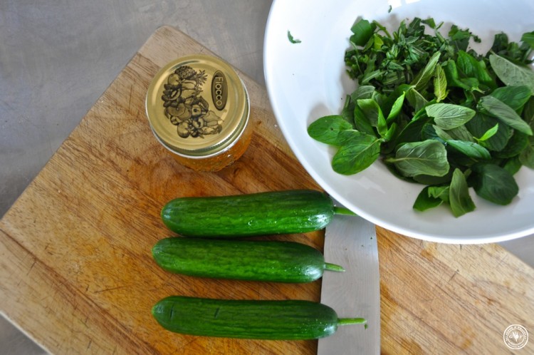 Dann haben wir ja jetzt noch endlos Zeit für den Gurkensalat. Wir nehmen kleine, grüne (Mini)Gurken. Die gibt es im türkischen Lebensmittelhandel.