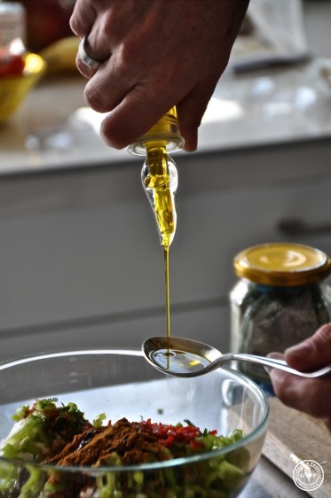 Dann wieder mein Lebenselixier – natives Olivenöl hinzugeben,