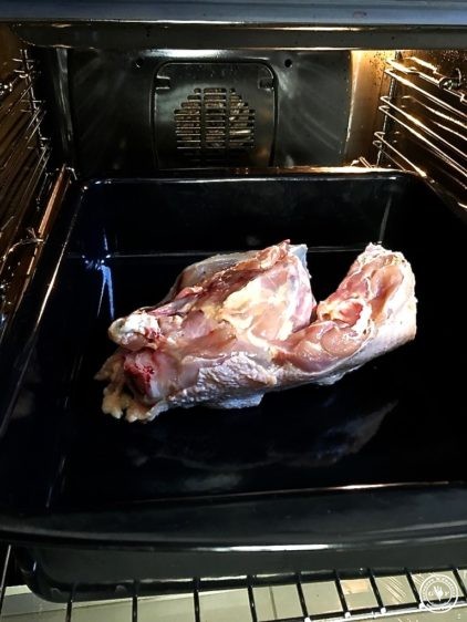 Also ebenfalls die Brust filetieren, so dass nur noch die Karkasse übrig bleibt. Diese kommt bei 170 Grad für 1.5 Std. in den Ofen und sorgt später für sehr viel zusätzlichen Geschmack in der Suppe. Mit etwas Olivenöl beträufeln und ab in den Ofen. Das Filet kann dann für ein weiteres Gericht verwendet werden.