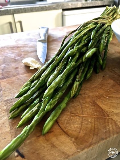 Für die Gemüse-Einlage zum Schluss nehmen wir wilden, grünen Spargel; der ist ganz dünn und sehr aromatisch (gibt es gerne bei italienischen Gemüsehändlern), jungen Blattspinat, Ingwer in Streichhölzer geschnitten, 1 Spitzpaprika, grüne Bohnen sowie eine kleine Aubergine. Alles in mundgerechte Happen schneiden und zum späteren Blanchieren beiseite stellen.