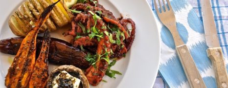 Es ist Sonntag, die Sonne lacht, wir haben strahlend blauen Himmel und Zypern zeigt sich bei 22 Grad von seiner schönsten Seite. Noch ist keine Saison und wir haben den Strand ganz für uns – Zeit für ein Picknick am Meer! Also flugs Klapptisch und -stühle zusammenpacken, Teller, Gläser, Besteck in die Tasche stopfen, die Flasche Wein sowie eine Dose Bier kaltstellen und den Minigasgrill mit Kartusche ausstatten. Jetzt müssen nur noch eben die Köstlichkeiten vorbereitet werden und es kann losgehen! Es gibt Giuseppes sagenhaften Orangen- Fenchelsalat mit Granatapfelkernen und Senfdressing, Rosmarin-Garnelenspieße mit grobem...