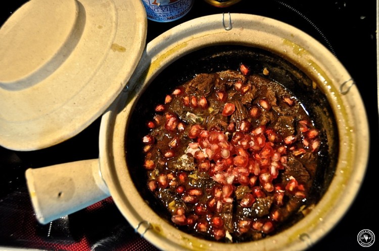Den Tontopf bei mäßiger Hitze zunächst anwärmen. Funktioniert übrigens auf allen Herden außer auf Induktion. Neutrales Öl (bspw. Sonnenblumen-, Erdnuss- oder Sojaöl) in den Topf geben, den Knoblauch leicht andünsten. Dann die Hitze erhöhen und das Fleisch anbraten. Die Curry-Paste sowie die Sojasauce und Fischsauce dazugeben und kurz anbraten. Mit 100ml Wasser ablöschen, die Hitze reduzieren auf ein Minimum und 1,5 Stunden köcheln lassen.