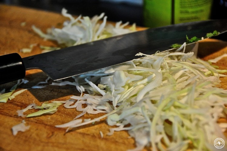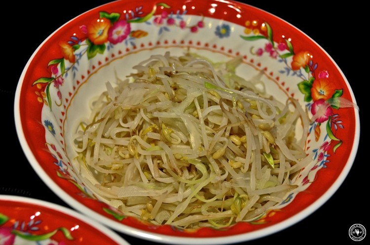 Einen Topf mit Wasser zum kochen bringen und die Nudeln in Salzwasser circa 3 Minuten kochen. Dann die Weisskohlstreifen und Sojasprossen dazu geben und weitere 2 Minuten kochen. Danach abgießen und in 2 Schüsseln verteilen. Ja es ist wieder Kitsch angesagt :-). Speziell in der Asia Street Kitchen.