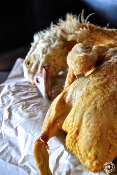 Jetzt ist die Ente auch soweit. Ich hoffe sie ist nicht zu durch und bereits trocken. Sie war recht fett und das schützt die Ente beim Braten sehr gut.