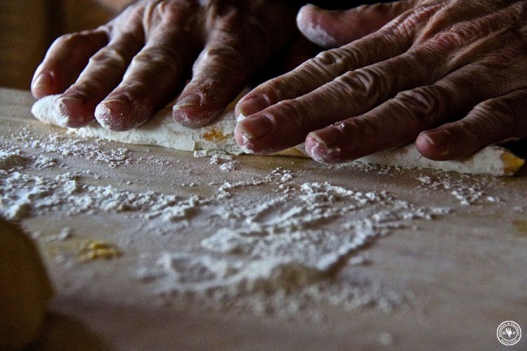Anschließend fingerdick ausrollen und kleine Gnocchi schneiden. Darauf achten, dass sie nicht zusammen klumpen (dabei hilft es, sie noch ein wenig mit Mehl zu bestreuen).