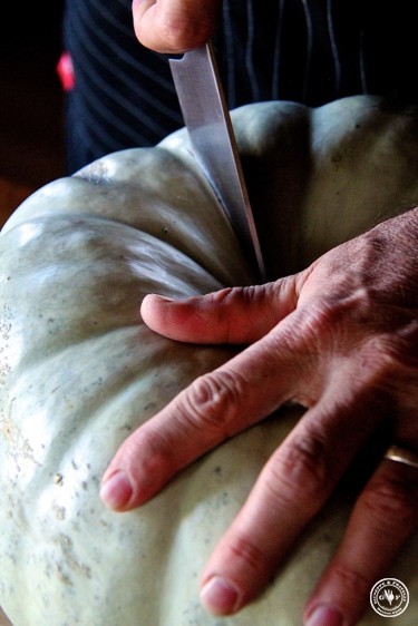 Ok – 350 g Kürbis schälen und in Scheiben schneiden. Bei 180 Grad Umluft im Ofen zirka 10min backen.