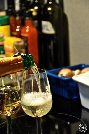 Nachdem wir nun von unserer persönlichen Lüftung zurück sind, erst einmal die Terrine aus dem Kühlschrank nehmen und ein Schlückschen von dem was so schön prickölt in die Bauchnabel genießen.