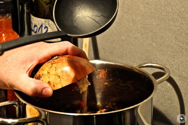 Jetzt kommen die Linsen dran. Die hier sind aus Umbrien von einem unserer Streifzüge durch die Lande. Wir lieben es einfach, alles auszuprobieren und zu kaufen. Da kann es dann aber schon mal sein, dass die liebe Linse doch bis in den Herbst warten muss. Es hat sich gelohnt. Diese Berglinsen sind ehrlich aromatisch, haben einen feinen, nussigen Geschmack und verkochen nicht. 125g für 2 (da bleibt dann noch was übrig für meine Giuseppina am nächsten Tag) in reichlich Wasser 20 min köcheln. Salz benötigen sie nicht – aber dazu später mehr.