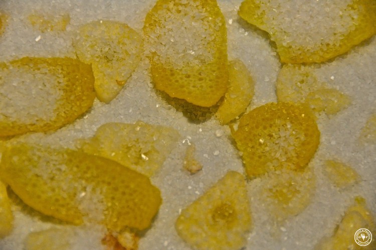 und nach 3 Minuten die Chilistreifen, Tomaten- und Karottenwürfel zugeben. Mit einem halben TL Zucker karamelisieren. Dann den Knoblauch und die Zitronenzesten zugeben und nach 2 Minuten vom Feuer nehmen.