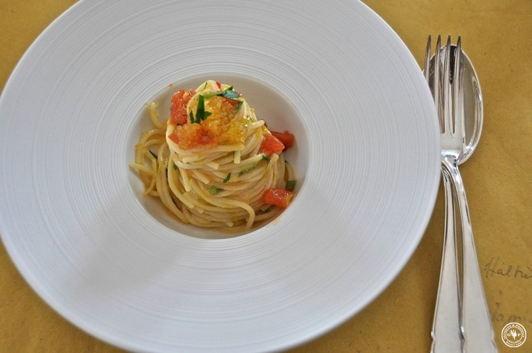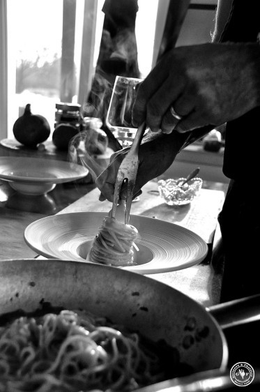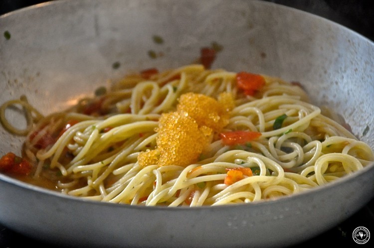 Hier könnten wir noch Stunden bleiben, fachsimpeln und Rezepte austauschen. Doch wir müssen. Wir haben Hunger. Es ist 11.50 h. Und hier kommt was nicht zu vermeiden war:  Spaghetti mit Felchenrogen!