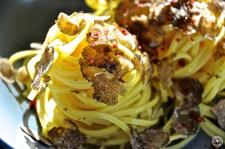Das Beste dabei: Giuseppe kocht Trüffelpasta mit frischen schwarzen Trüffeln aus den Sibillinischen Bergen mit leckerer Pasta eines Herstellers aus dem Nudelzentrum Campofilone. Dort ist man mit viel Leidenschaft am Werk und die Eier werden noch von Hand aufgeschlagen. Dazu schenken wir die feinen Rot- und Weißweine der Tenuta Cocci Grifoni sowie Traditionslimonaden aus Ascoli Piceno aus.