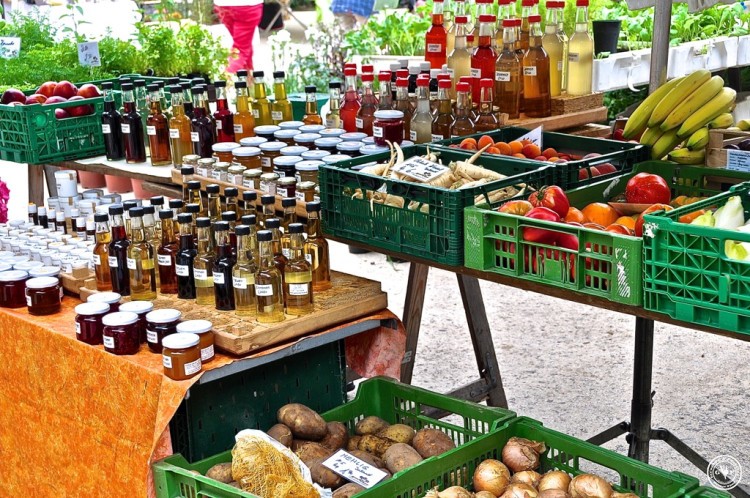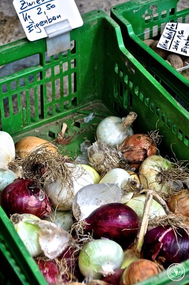 Danach Augen auf, über den Markt schlendern und die gourmettische Lage sondieren… Fängt gut an. Ich liebe Fläschchen. Pötte. Gläser und Tiegel. Zwiebeln schau‘ ich lieber an, hübsch sind sie ja, aber ich übe seit Jahren, sie zu essen & zu mögen…