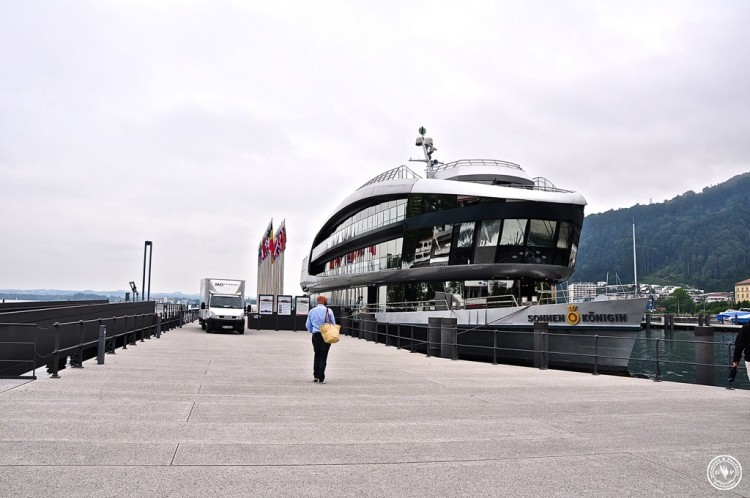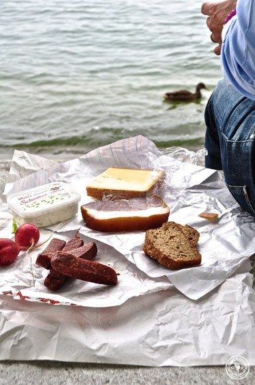 Satt und zufrieden genießen wir noch das herrlich-trübe Panorama und die Sicht auf die gegenüberliegende Bregenzer Festspielbühne. Noch ein paar Tage lang wird dort in einer spektakulären Inszenierung Mozarts Zauberflöte gegeben. Ist natürlich ausverkauft und so fahren wir heim… Hat was, so ein Stadtpicknick!