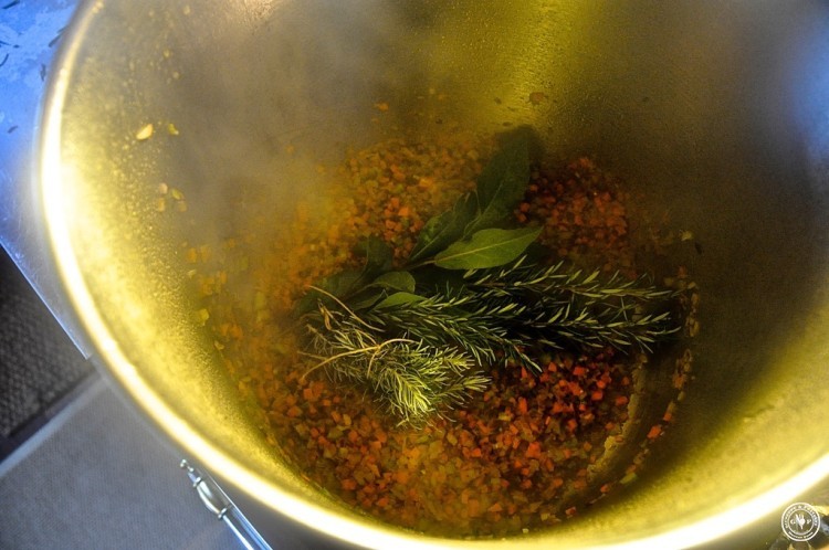 zudem je 350g Karotten, Sellerie und Zwiebel, Knoblauch und 0,75l bestes Olivenöl,