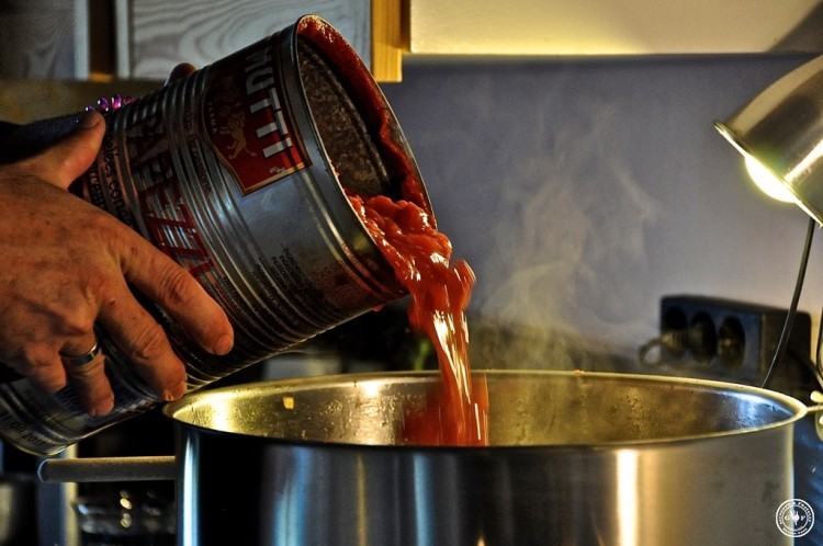 8 Kg stückige Tomaten (hier von Mutti), 850 ml Tomatenmark,
