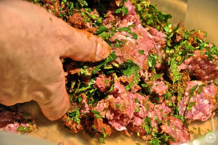 500g gemisches Hackfleisch (Rind/Lamm oder Rind/Schwein) je nach Geschmack und Konfession