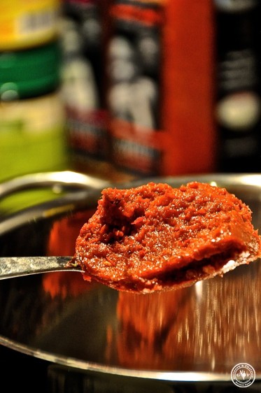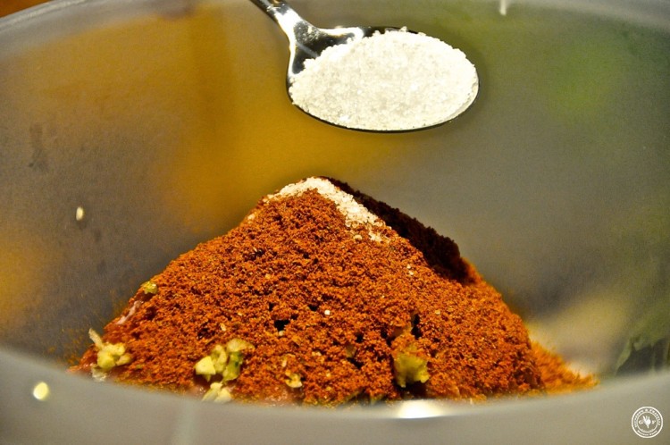 Zu guter Letzt 1 TL von dem Köftegewürz untermischen und das Paprikagemüse nochmals mit Salz und Harissa abschmecken.