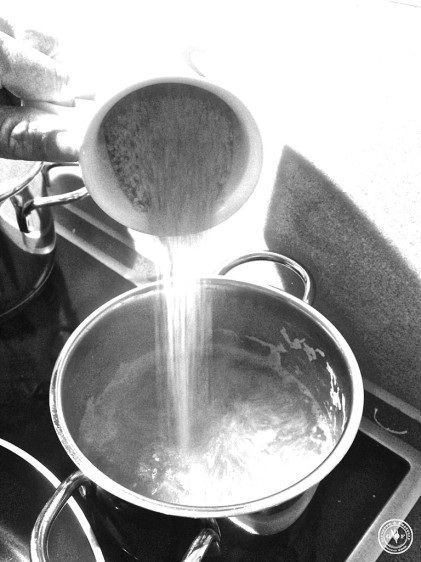 Den 125g Bulgur waschen und in 250ml Gemüsebrühe circa 8 min kochen. Er sollte noch Biss haben.