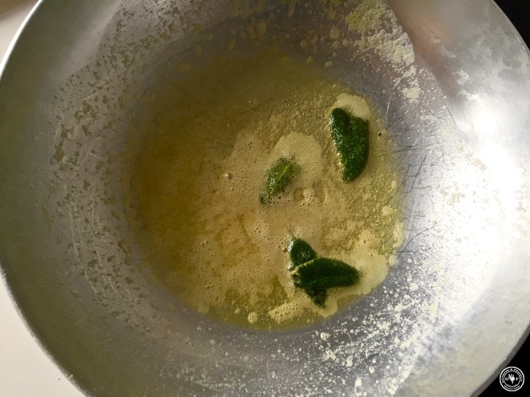 In der Zwischenzeit 2 EL Butter in eine Pfanne zusammen mit einigen Salbeiblättern…