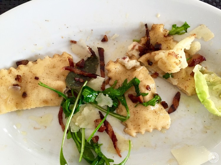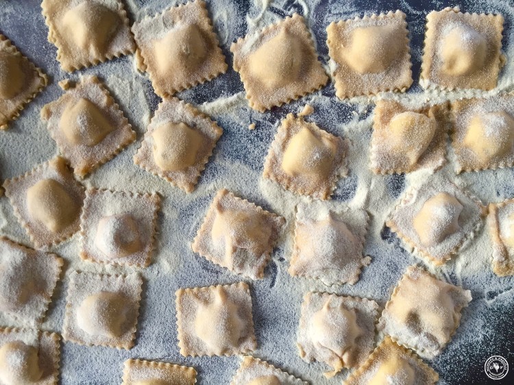 Giuseppina schmökert in Wohnzeitschriften und ich verbringe den Nachmittag in der Küche. Denn nur die Übung macht den Meister. Zum Raviolimeister wird man nicht über Nacht. So wie einst Rom nicht an einem Tag entstanden ist. Also heute: Ravioli mit Blumenkohl und Speck.