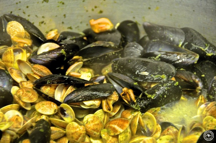 Davide und Mosè, der nicht nur ein Faible für die Önogastronomie sondern auch für das Landleben hat, hatten sich vor einiger Zeit kennen gelernt und schnell einen gemeinsamen Nenner gefunden: Sie wollten echte, wahrhafte und traditionelle Produkte zurück auf den Tisch bringen, die den Geschmack ihrer Böden und die Geschichte ihrer Küche widerspiegeln, dabei aber gut in das schnelle, moderne Leben passen. Klar, dass wir die Firma bei Macerata unbedingt besuchen und uns ein Bild der Produktion vor Ort machen wollen. Wir werden von Mosè herzlich empfangen und plaudern über das enorme Potential der Marken, Le Marche. Die authentischen Menschen dort, die (leider?) immer noch viel zu bescheiden sind, um für sich, ihre unverschmutze Landschaft und die köstlichen Produkte die Werbetrommel so laut zu rühren, wie das in anderen Gegenden Italiens ganz selbstverständlich praktiziert wird. Über die Gründung der Firma und den Anspruch an das Produkt, über Kulinarik und Qualität im Allgemeinen, über Massenproduktion und Nischenprodukte. Was wir hören liegt ganz auf unserer Linie, und als uns Davide schließlich durch die Produktion führt, bestaunen wir Töpfe mit blubbernden Tomatensaucen, Mitarbeiter die frische Tintenfische noch selbst ausnehmen, ebenso wie die frischen adriatischen Venus- und Miesmuscheln, die gesäubert und im heißen Sugo mitgemocht werden, um ihr himmlisches Aroma an die Sauce abzugeben. Nicht zu vergessen die Temperaturkammer, wo die Ware schnell und stark heruntergekühlt wird, um sie natürlich haltbarer zu machen.