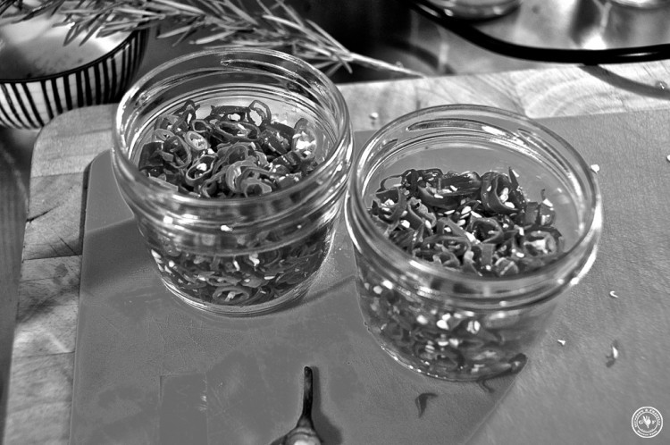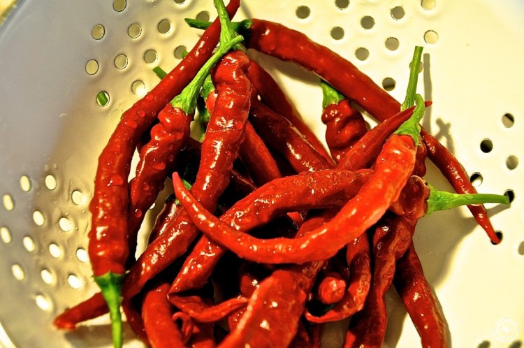 Damit sich keine Keime mehr auf den Peperoncini befinden, übergieße ich sie immer mit kochendem Wasser.