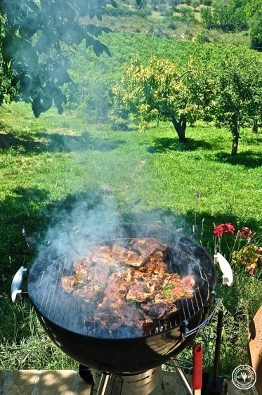 Das marinierte Fleisch wird in kleingehackten, frischen Kräutern (Salbei, Thymian, Rosmarin, Fenchelkraut, Oregano), Salz/Pfeffer, 1 gehäuftem TL scharfes Paprikapulver, Saft einer Limette, 2 EL Honig, 1 TL Fenchelsamen und Olivenöl Extra Vergine über Nacht mariniert. Es nimmt herrlich den Kräutergeschmack an und schmeckt unglaublich frisch.