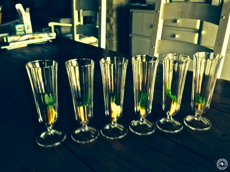 Zum Aperò haben wir Pfirsich-Mint-Prosecco: