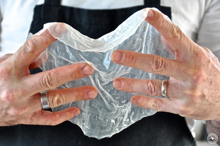 Der ganze Trick beim Verarbeiten des Reispapiers ist, dass man es 15 sec. in einen Topf mit lauwarmes Wasser legt, dann auf ein Küchentuch legt und mit den Zutaten füllt.
