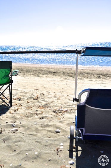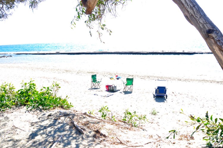 Schnell unsere alte Lady beladen. Wir finden ein schönes schattiges Plätzchen für sie direkt am Strand und bauen unser kleines Picknick-Paradies auf. Weit und breit ist keine Menschenseele zu sehen, was für ein Luxus!
