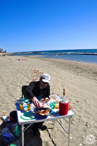 Es ist Sonntag, die Sonne lacht, wir haben strahlend blauen Himmel und Zypern zeigt sich bei 22 Grad von seiner schönsten Seite. Noch ist keine Saison und wir haben den Strand ganz für uns – Zeit für ein Picknick am Meer!