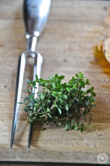 Mit der Zitrone, dem Knoblauch und dem Zitronenthymian