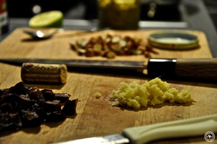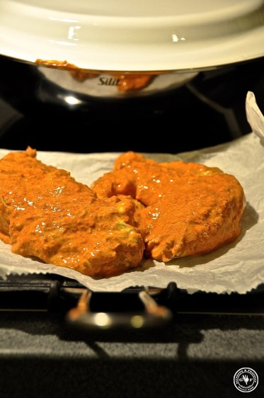 Diese Zutaten (ausser Hühnchen) alle miteinander verrühren, die Hähnchenteile damit gut bedecken und 24 Stunden im Kühlschrank durchziehen, also marinieren lassen.