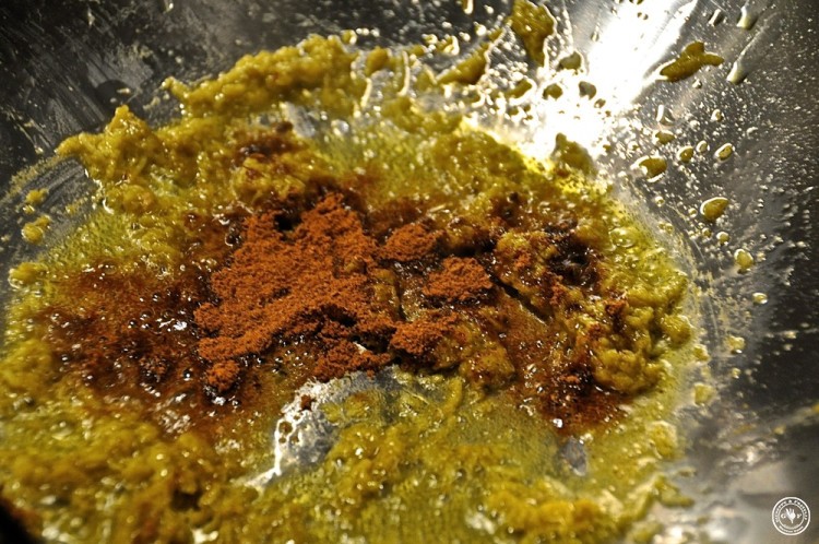 und etwas Olivenöl in einen Wok geben und kurz abschwenken. Der ganze Raum riecht förmlich nach Orient. Herrlich.