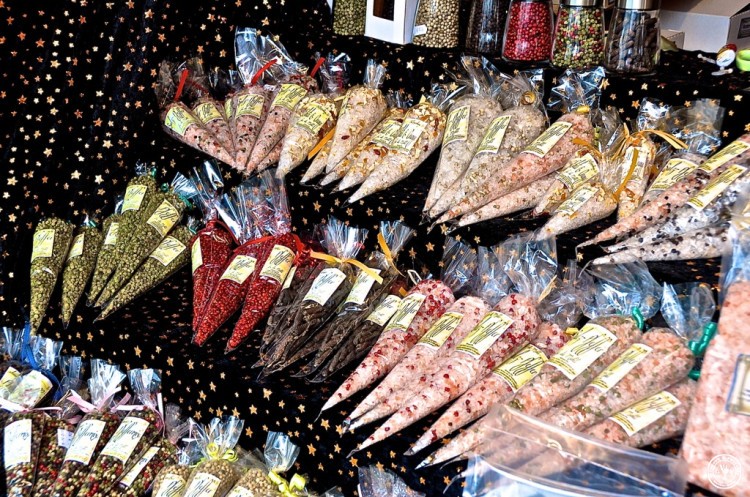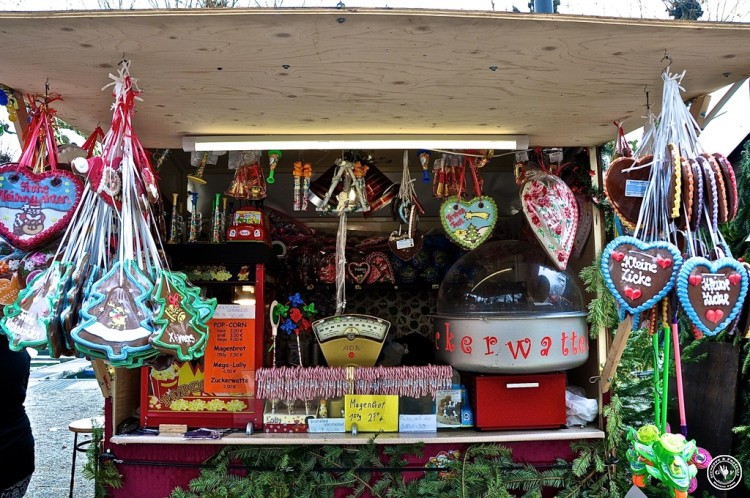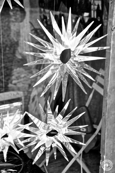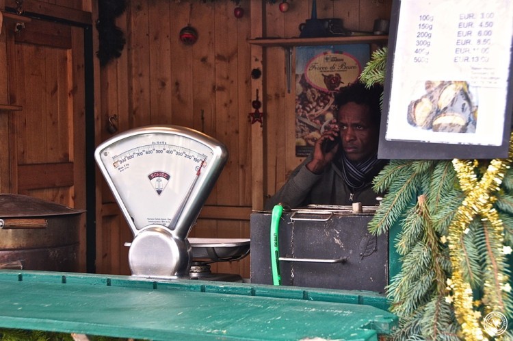 Es ist noch wenig los auf dem Weihnachtsmarkt, überall riecht es nach Wurst, Pommes, Glühwein, gebratenem Fett und gebratenen Mandeln. Warenmäßig werden die üblichen Verdächtigen feilgeboten, mal mehr & mal weniger geschmackvoll :-).